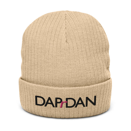 DAPrDAN Ribbed Knit Beanie (Black/Blue Logo)